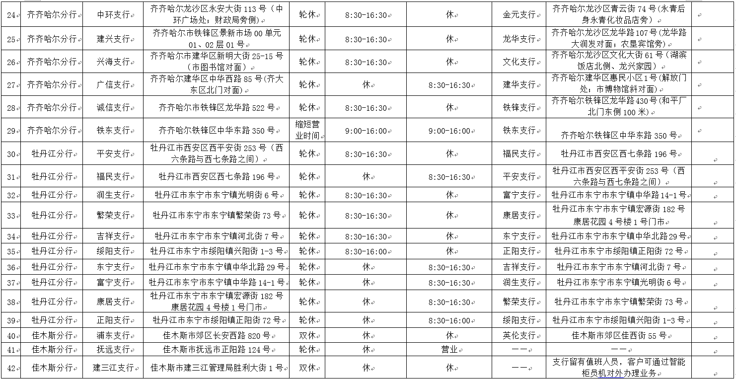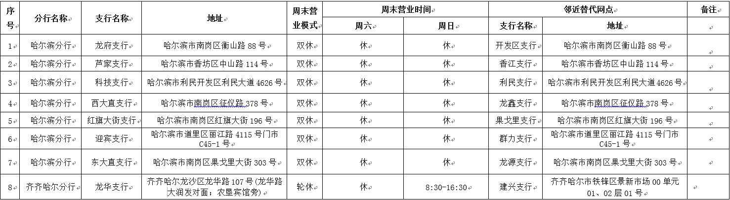 关于龙江银行营业网点周末轮休情况的公告(对外公告版)2026年2季度
