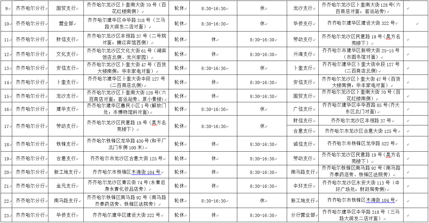 为优化网点服务资源配置,提升运营效率与服务质量,根据国家相关规定及我行实际运营情况,经报备监管部门,我行决定对部分营业网点实行轮休安排,现将具体轮休安排公告如下: